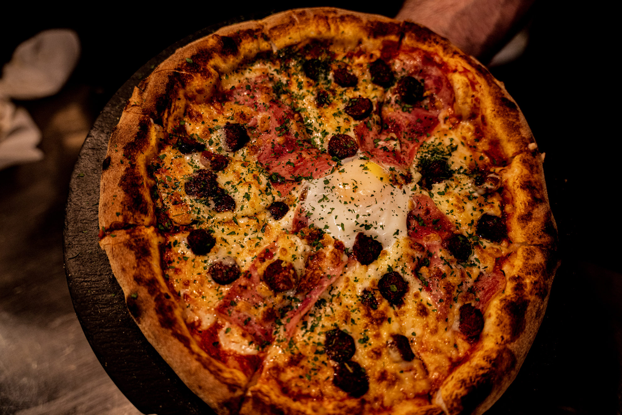 Sauce tomate, mozza, viande hachée charolaise, poulet mariné, merguez du boucher, tomates cerise et oignons rouges.